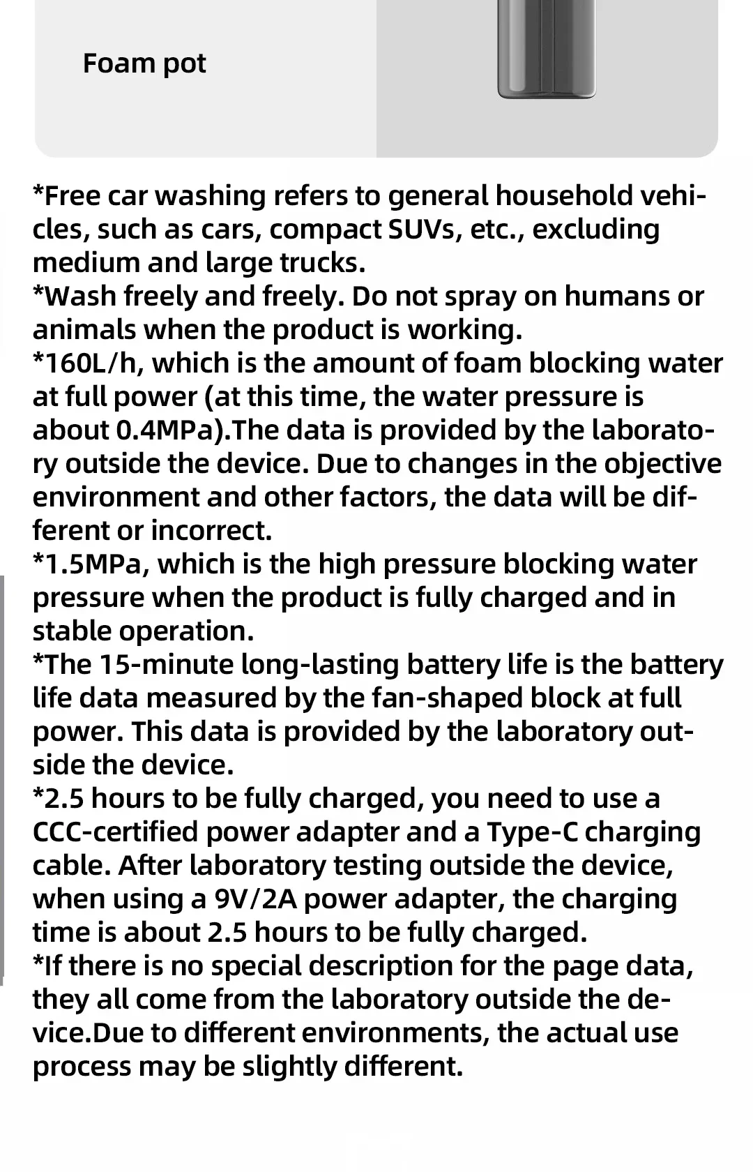 Foam barrier: pressure (0.4±0.2)MPa flow rate (160±18)L/h